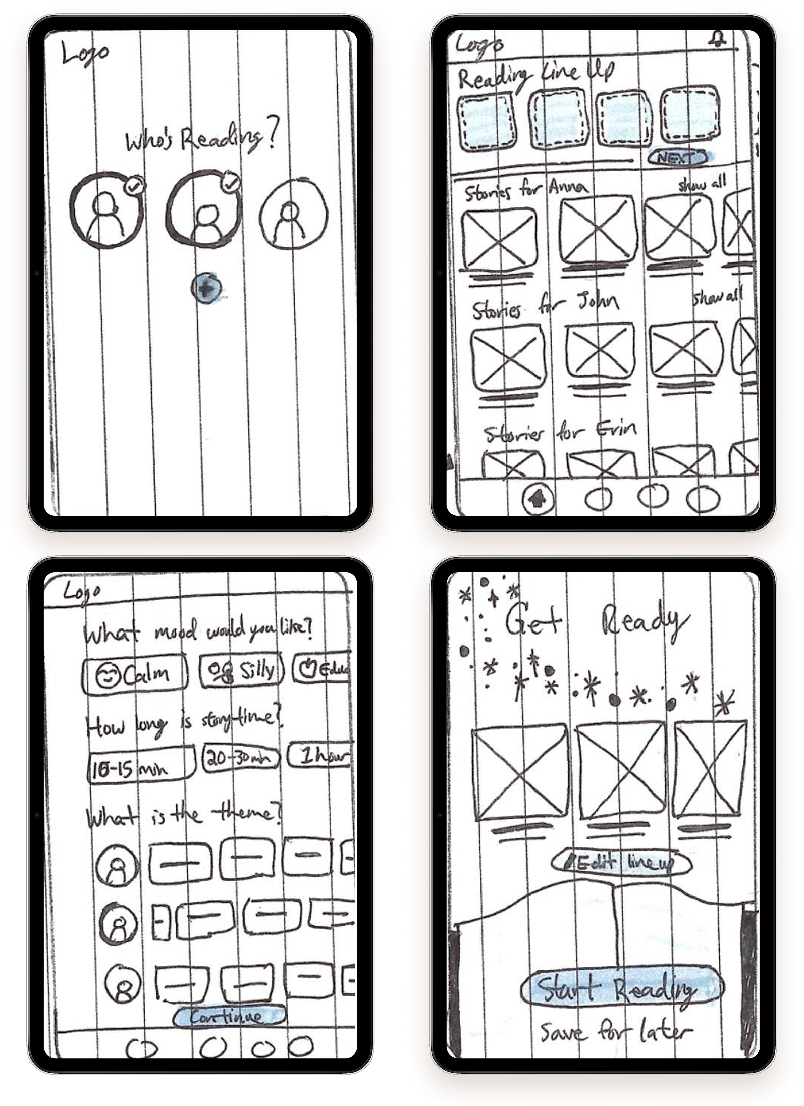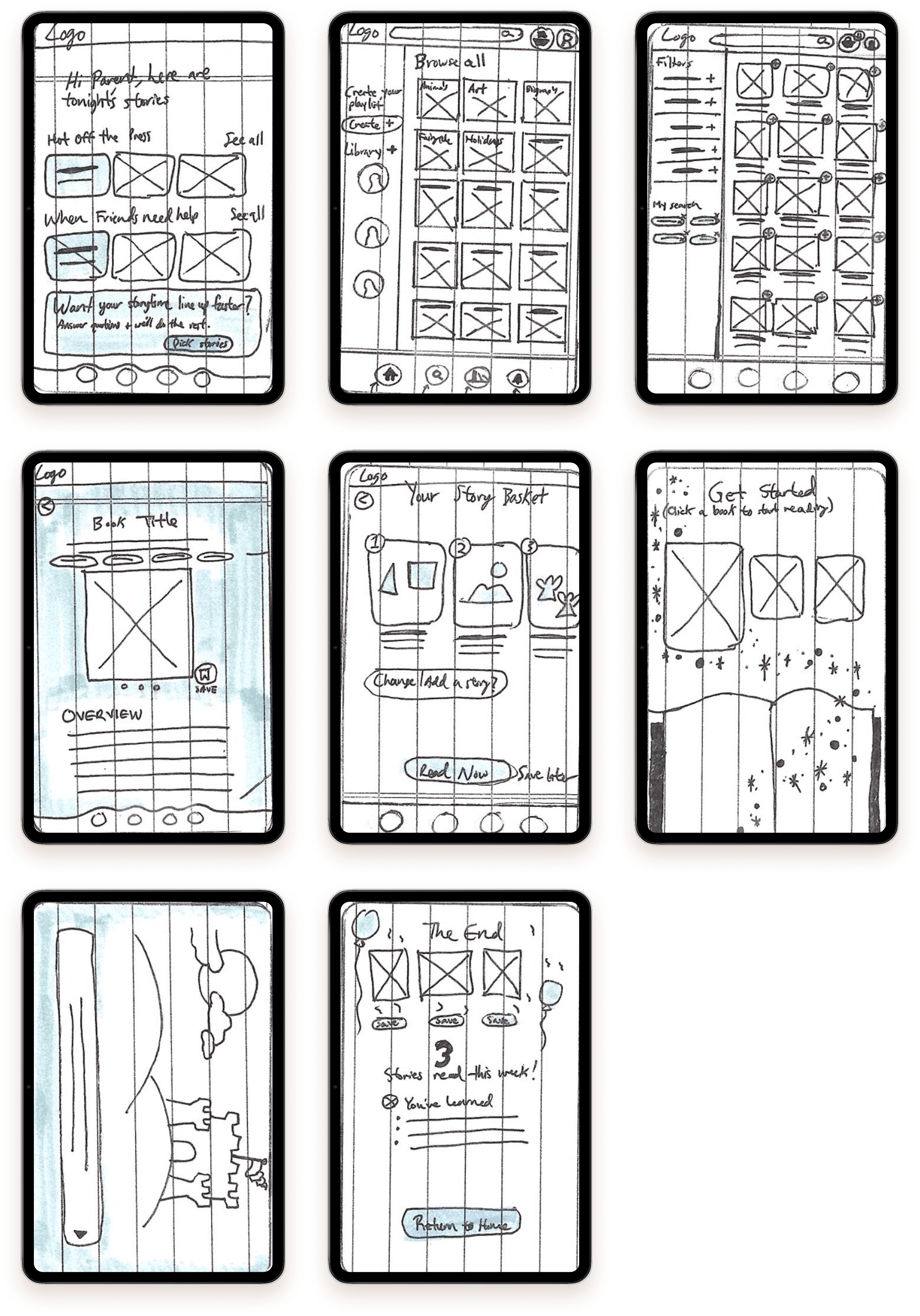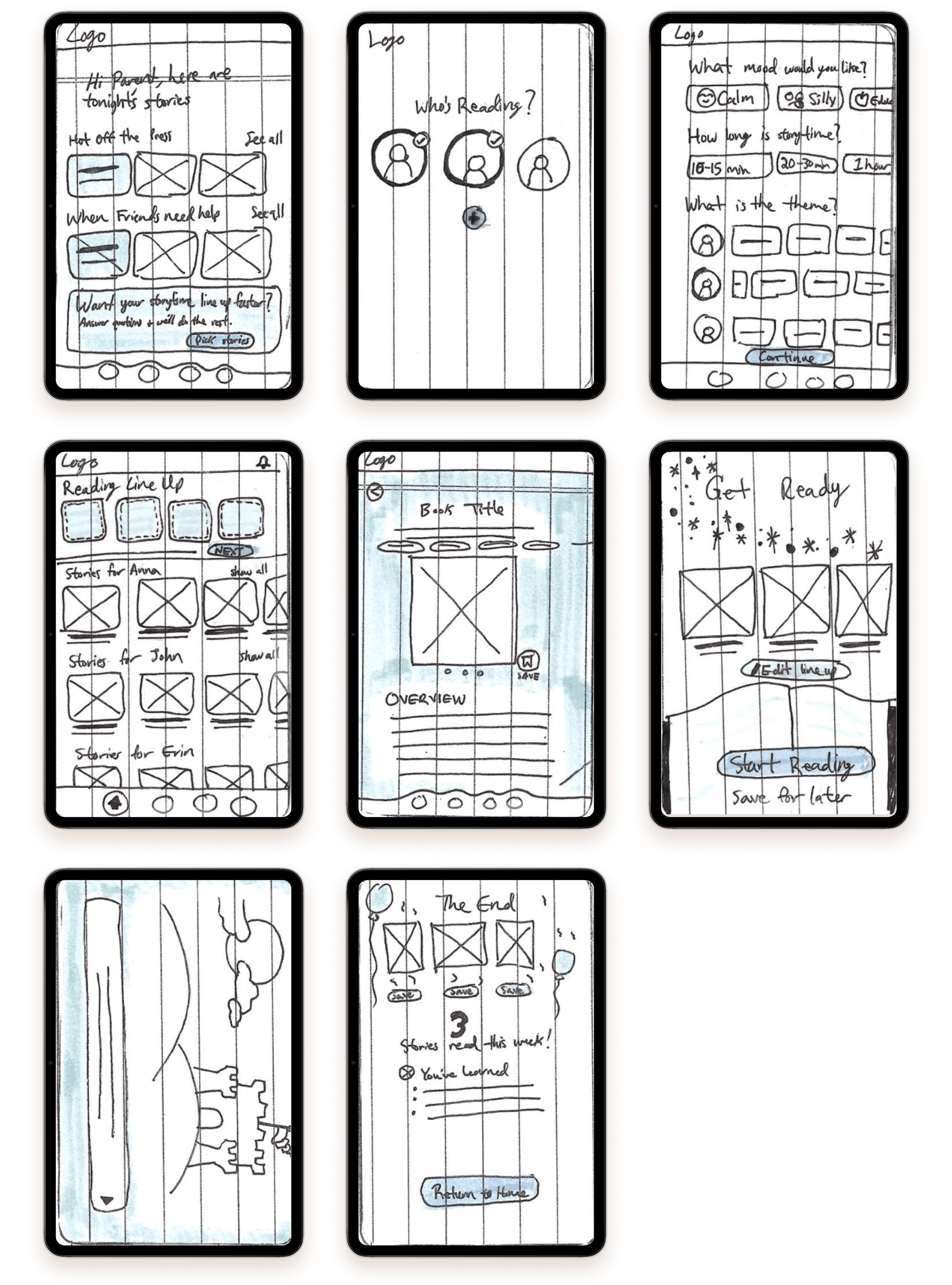 To understand the problem space, I conducted interviews with parents and grandparents who regularly read to children between the ages of one and twelve. These participants represented the people most often responsible for initiating storytime and navigating shared reading on tablets.